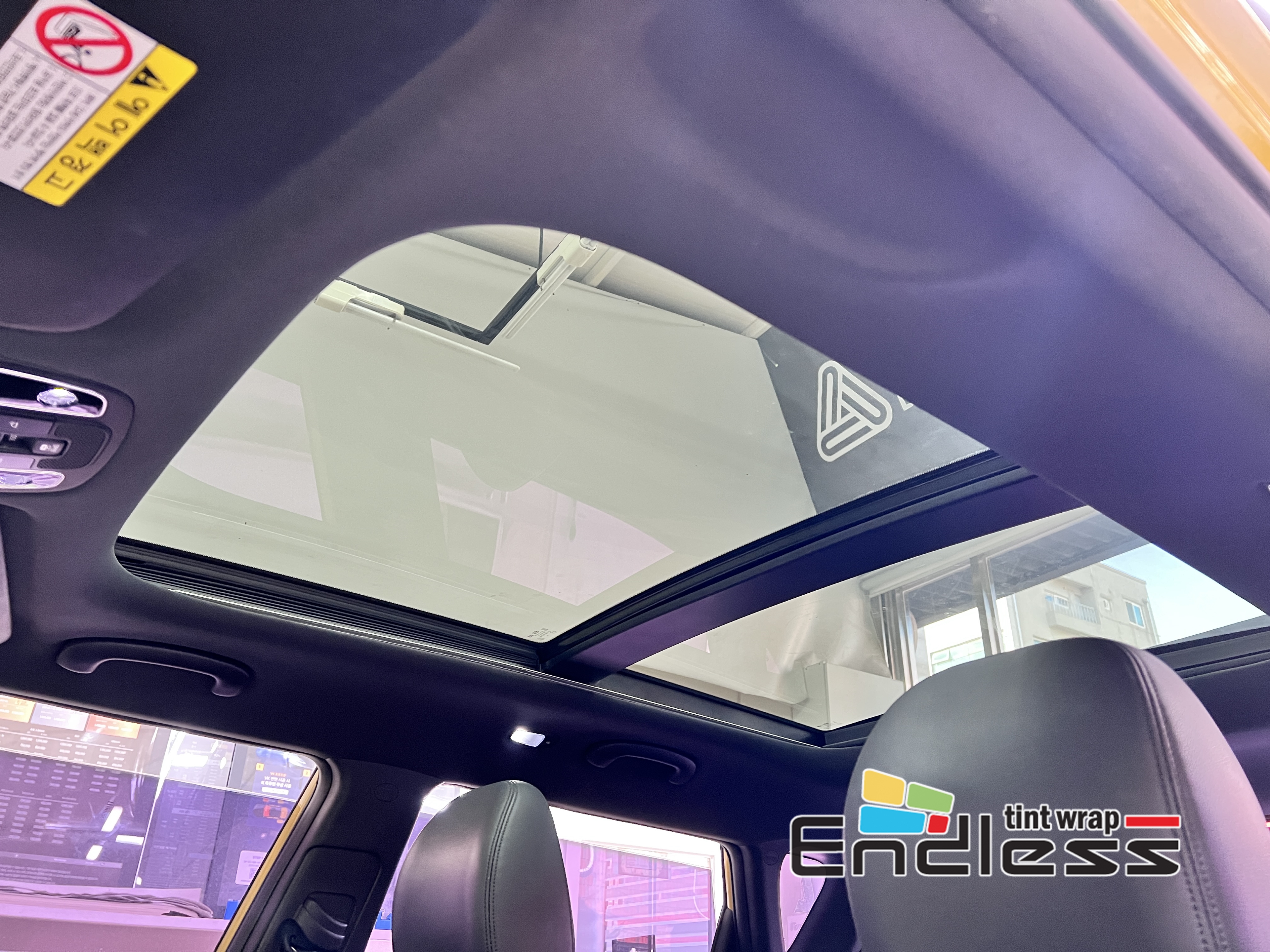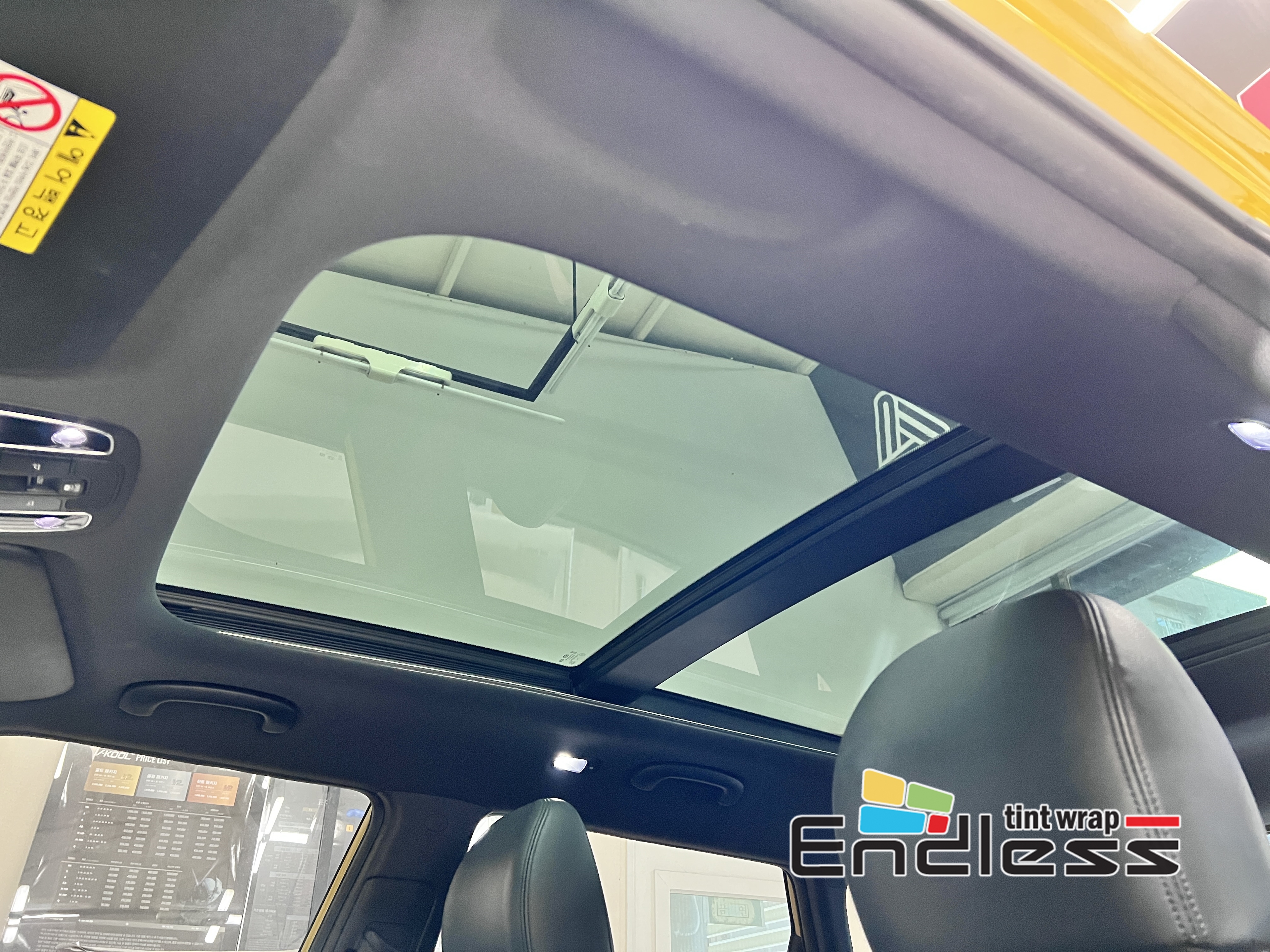 파노라마 썬루프 썬팅 시공전 사진입니다.